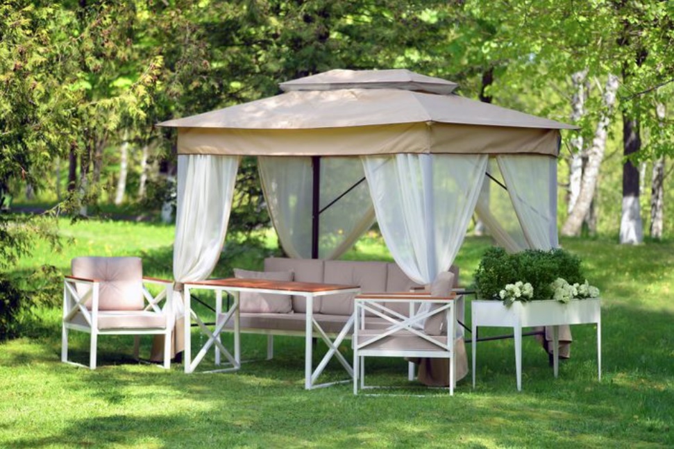 Текстильный комплект ОЛСА на шатер-беседку садовую бежевый, ТЕНТ + СЕТКА
